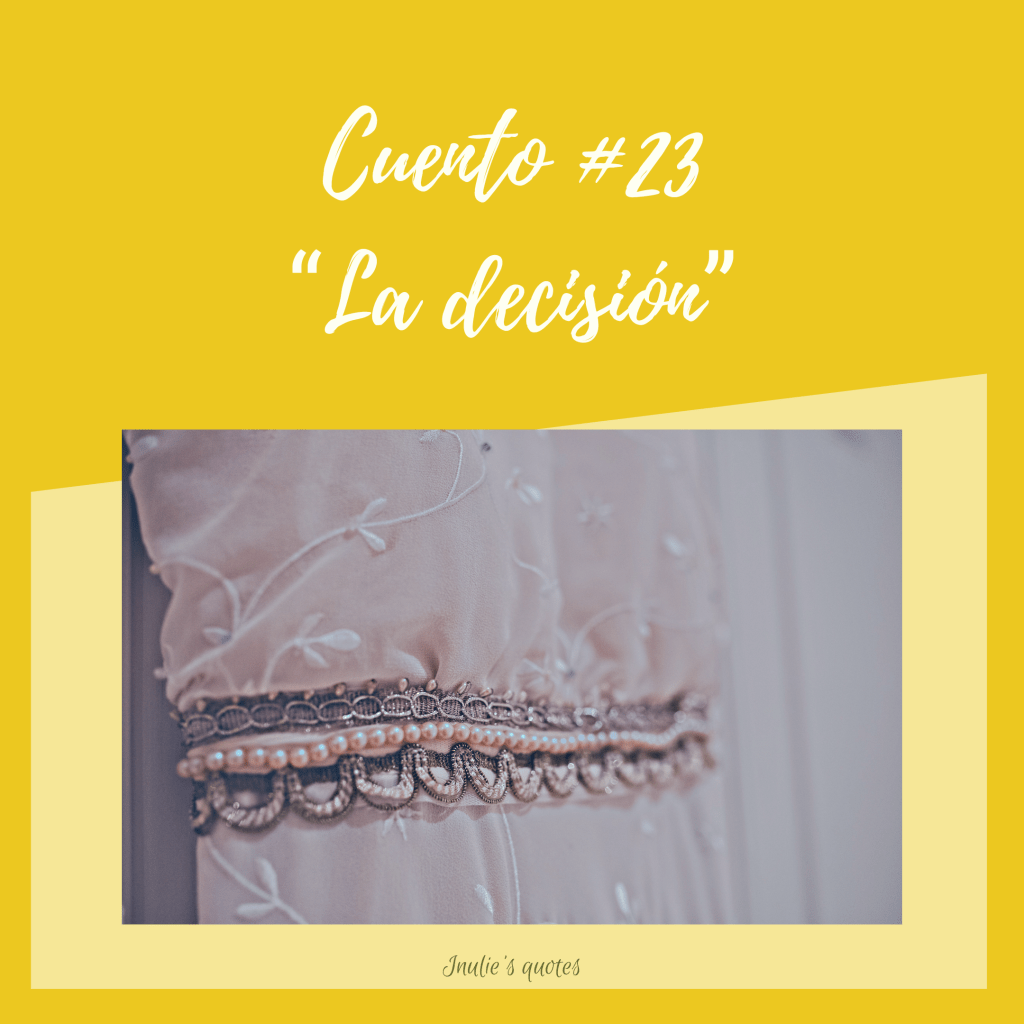 Mientras el café se entibiaba mis ojos se llenaban de lágrimas. Sabía que no quedaba mucho tiempo por delante, que lo había postergado tanto que ya me encontraba entre la espada y la pared. Me odiaba por estar viviendo esos últimos días de soltera de esa manera; me odiaba por no permitirme ser feliz de una vez por todas; me odiaba porque volvía él a mis pensamientos y lo hacía protagonista de algo en lo que ni siquiera merecía ser parte. ¿O quizás sí lo merecía y yo estaba viéndolo todo al revés?