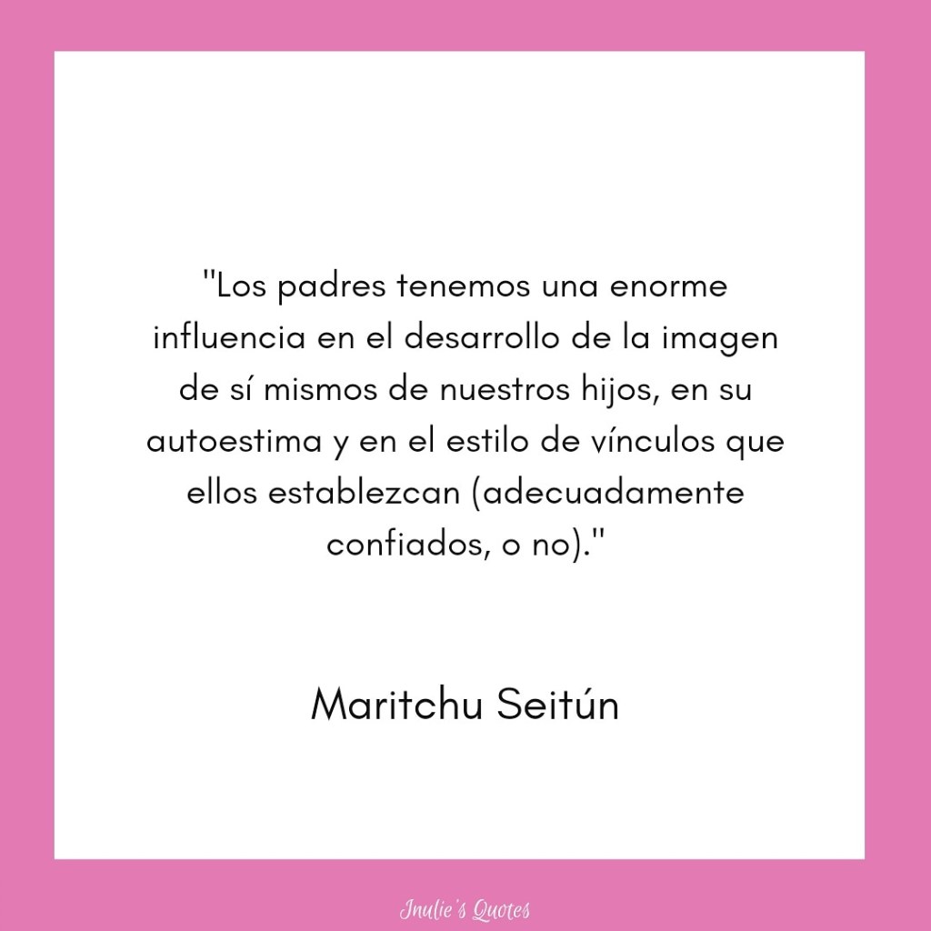 Esta frase que elegí puede dar vértigi, y claro que el vértigo existe, porque nadie puede pensar que la incidencia de uno sobre sus hijos es nula. Pero justamente como es un compromiso tan importante es mucho mejor hacerlo a conciencia, teniendo una guía de qué les hace bien a los chicos y qué no.