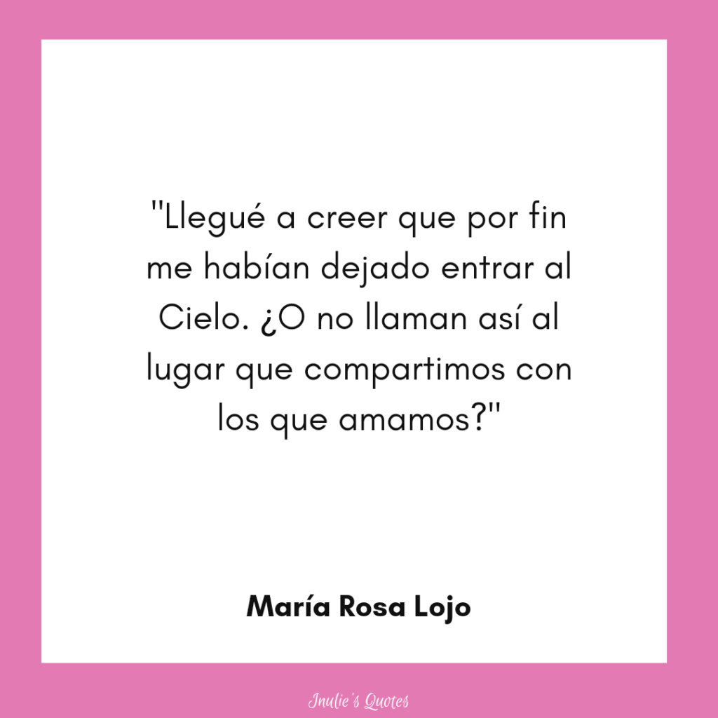 Al terminar de leer este libro pienso dos cosas. Una, que es una joya literaria que espero que las generaciones futuras sigan leyendo y analizando. Y la segunda: ¡qué honor que Lojo sepa tanto de tu vida como para recrear aunque sea una parte de lo que imagina es tu eternidad! La fuerza que tiene la literatura no deja de sorprenderme.