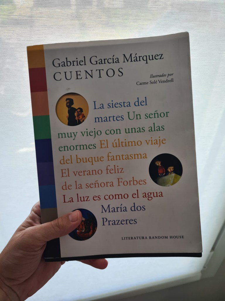 En este caso además las ilustraciones de Carme Solé Vendrell cuentan con el hecho de ser las únicas que veremos alguna vez de cuentos de García Márquez hechas con el permiso del autor. El tamaño del libro es perfecto para poder apreciarlas y éstas, llenas de color y de expresividad, saben acompañar a la perfección el realismo mágico que caracteriza al autor. Las historias son seis: «La siesta del martes», «Un señor muy viejo con unas alas enormes», «El último viaje del buque fantasma», «El verano feliz de la señora Forbes», «La luz es como el agua» y «María dos Prazeres». Todos ellos cuentan con la presencia de un niño o una niña. Me gustó «La luz…» porque los hermanitos me hacían acordar a mis hijos y su fantasía sin límite. Desde lo narrativo me pareció interesante «El verano feliz…» y desde la técnica «El último viaje…» porque aunque no lo crean en las 7 páginas que tiene el cuento, el único punto que hay es el del final. No hay ningún punto seguido, ni punto y aparte y, por supuesto, no está dividido en párrafos. Este recurso le permite al lector sumergirse en la desesperación del protagonista.
